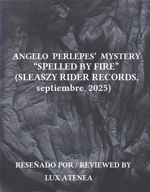 A mediados del pasado mes de septiembre fue presentado oficialmente el quinto álbum de la banda musical griega Angelo Perlepes’ Mystery titulado “Spelled By Fire”. Publicado a través del prestigioso sello discográfico Sleaszy Rider Records en formato digital, y en una edición limitada en digipak CD que incluye la versión del tema “Babylon” de Aphrodite’s Child como extra, ambos se encuentran disponibles tanto en la webstore del sello como en su página oficial en Bandcamp. El álbum “Spelled By Fire” ha sido engalanado con esta impactante imagen de portada con ilustraciones a cargo de Rodrigo Gudiña (Core76 Studio), proyectando este conflicto entre dos bandos donde lo humano queda bajo la influencia de poderes que van mucho más allá de lo terrenal. Unos guerreros pertrechados con ropas, armaduras, y armamento propios de un ejército de la antigüedad, destacando especialmente la presencia del tempo erigido en lo más alto, además de la visión de este ojo divino que, desde las alturas celestiales, todo lo observa. Formado por Billy Vass (vocalista), Stella Kontogianni (coros), Angelo Perlepes (guitarras), Takis Avramopoulos (bajo), y Thanos Dimitriogannis (batería), la banda musical griega Angelo Perlepes’ Mystery vio la luz en el año 1986 en la ciudad de Atenas, y cuya continuidad discográfica finalizó en 2004 con su álbum “Destiny” (LJYL Records). Después de dos décadas, “Spelled By Fire” se convierte en su retorno artístico, presentando esta nueva obra musical donde el estilo speed metal domina en su perspectiva conceptual, ofreciendo esta fusión de raíces sonoras old-school con estructuras musicales más actuales dentro de la escena metal. Trece temas espectaculares y enérgicos que encantarán a los melómanos lectores de Lux Atenea afines a esta apasionante escena que, pasen los años que pasen, sigue ampliando su oferta artística y discográfica a través de una industria consolidada firmemente a lo largo de décadas gracias a la fidelidad inquebrantable de sus innumerables seguidores. El álbum “Spelled By Fire” es impresionante, su audición es rica en matices gracias al extraordinario trabajo técnico de masterización, y la experiencia interpretativa que poseen los artistas de la banda musical Angelo Perlepes’ Mystery se nota con total contundencia y pasión, ofreciendo un repertorio sonoro vibrante, superlativo, y poderoso en cada uno de estos temas.