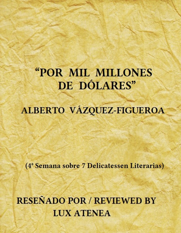 Como analista cultural y apasionado lector, he de reconocer que la novela es uno de los géneros literarios que menos suelo leer, por lo que suelo seleccionar mucho estas obras antes de sumergirme en ellas. El arco temático dentro de este género literario es inmenso, pero hay excelsas novelas que nos narran y describen con absoluta precisión historias ficticias que perfectamente podían ser tomadas como reales. Incluso, con intencionado detalle, un porcentaje de estas novelas ve aumentado su grado de realidad al describir personas, empresas, y sucesos a los que tan solo hay que cambiar su nombre para establecer paralelismos indiscutibles si el bibliófilo lector está un poco al día respecto a los acontecimientos históricos y su desarrollo. Una de estas novelas tan sorprendentes e intrigantes es “Por mil millones de dólares”, escrita magistralmente por una de las mentes más lúcidas, imaginativas, y creativas del panorama literario español en las últimas décadas: Alberto Vázquez-Figueroa. La guerra de Iraq, los grandes intereses económicos manejados por las multinacionales y la gran banca, la geopolítica mundial seguida por los Estados Unidos de América, los complots y las luchas por el poder dentro del ejecutivo en el gobierno, los terroristas y sus voluntarios suicidas, el crimen organizado… dan forma y trasfondo a esta inteligente trama, ofreciendo al culto lector de Lux Atenea que adquiera esta edición, una historia ficticia desarrollada en un mundo no tan ficticio. De por sí, esta compleja trama comienza con la historia de Salka Embrarek, la única superviviente de una familia de iraquíes tras la invasión norteamericana y que, por las ansias de venganza, el destino de su vida termina quedando en manos de intereses internacionales cuyos objetivos e intenciones nunca llegará a vislumbrar claramente. Debido a esas ansias de venganza irracionales y totalmente desbordadas en su fundamento lógico y humano, ve su propia inmolación como esa acción suicida que saciará su ira al provocar una masacre, cuando, en realidad, es una pieza más dentro de un complot internacional dirigido por una empresa muy poderosa llamada Dall & Houston. A partir de aquí, la entrada en distintos escenarios de personajes de lo más interesantes como el detective Gregory Gregorian, el soberbio Wolf Lukas, el cerebral y metódico Tony Walker, el vicepresidente “Iceman”, el hacker Nelson Miller, el terrorista Mufti, el letal Severino Maldonado, o el escurridizo Mariel… no harán más que invitar al lector a la inmersión mental en esta trama, páginas tras página. Corrupción política y chantajes, lavado de dinero a través de la industria del cine (dentro de esta temática, recomiendo la lectura del libro “Hollywood y la Mafia” ya reseñado en Lux Atenea), pruebas de ADN de lo más esclarecedoras, inteligente manipulación de la opinión pública… todo en la novela “Por mil millones de dólares” es intriga, misterio, y desvelo en los próximos capítulos hasta la última página.