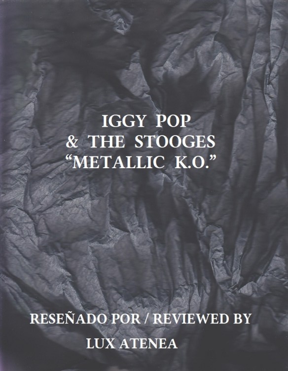 Recientemente, Iggy Pop y los Stooges han vuelto a unirse, dejando a sus fieles seguidores impactados y en estado de shock en cada ciudad donde descargan su adrenalina en vivo. Pero, hasta no hace mucho, el único registro sonoro que había inmortalizado su última actuación en directo estaba incluido en esta impactante edición discográfica titulada “Metallic K.O.”. Quienes en los últimos años se han echado las manos a la cabeza por las provocaciones realizadas por grupos musicales como Marilyn Manson, o por bandas musicales relacionadas con la escena Metal más extrema, han de saber que ya en la década de los setenta hubo un grupo musical que se encargó de romper todos los moldes y todos los estereotipos existentes en la sociedad occidental. Su nombre era Iggy Pop and The Stooges. Sus actuaciones en directo se convirtieron en la transgresión personificada sobre un escenario, y los escándalos se convirtieron en su modus operandi. Cortes reales sobre el cuerpo, escupitajos sobre el público, provocación estética, insultos, gritos, denuncia social… así podía estar sumando en la lista de sus quehaceres artístiscos más y más actos situados al otro lado del límite. Los melómanos lectores de Lux Atenea que tengan la oportunidad de adquirir el extraordinario álbum “Metallic K.O.”, escuchando estos dos CD´s podrán comprobar cómo todo lo anteriormente dicho en esta reseña era así. Iggy Pop and The Stooges, o sea, Iggy Pop y los hermanos Asheton, son auténticos maestros a la hora de arrojar a la hoguera esos íconos adorados hipócritamente por la sociedad occidental. Sin más demora, entremos en esta jauría humana atesorada musicalmente en formato físico.