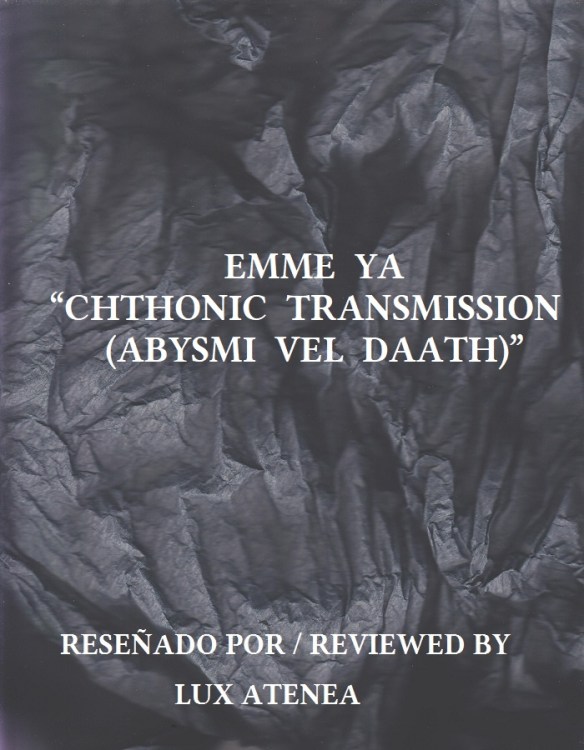 El pasado día 16 de marzo fue presentado el nuevo trabajo musical creado por el artista colombiano Edgar Kerval, alma máter de EMME YA. Editado por el prestigioso sello discográfico británico COLD SPRING RECORDS, tras el sugerente y misterioso título “Chthonic Transmission (Abysmi Vel Daath)”, los melómanos lectores de Lux Atenea podrán encontrar puro dark-ambient reflejado en estas seis excelsas composiciones que lo vertebran, adentrándose en un universo sensorial donde lo ritual y lo trascendente adquiere una belleza muy especial, y donde el claroscuro existencial presentará elementos salvíficos en su trasfondo real orientado al renacimiento y a la purificación del alma. Un impresionante trabajo musical que les impresionará, sobre todo, tras el admirable trabajo de masterización llevado a cabo por el maestro Martin Bowes (grupo de culto Attrition) en su ya mítico The Cage Studios (Coventry, Reino Unido). Si además a este ilustre trabajo sonoro le añadimos la grandeza y la espectacularidad visual de su diseño artístico llevado a cabo por Abby Helasdottir, el resultado final no podía ser otro que esta joya discográfica llamada “Chthonic Transmission (Abysmi Vel Daath)”. Un glorioso álbum al que ya le están abriendo las puertas del Templo de la Música para que tenga el honor de poner su nombre con letras de oro en el altar de Euterpe, porque el esoterismo, la magia, y la alquimia irradian cada una de estas composiciones para ser adoradas por los místicos melómanos entregados en cuerpo y alma al disfrute de la música cuyo significado va más allá de la belleza melódica y lírica. “Chthonic Transmission (Abysmi Vel Daath)” parece haber sido compuesto por un inteligente y virtuoso psicopompo como testimonio de sus viajes por el tenebroso inframundo y por el inabarcable universo divino, en unos radiantes y talentosos reflejos musicales con esencia metafórica y simbólica de la realidad ultraterrena del alma antes, durante, y posteriormente a su encarnación en nuestro mundo.