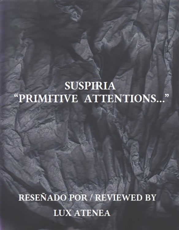 Publicado en Reino Unido en el año 1997 a través del prestigioso sello Nightbreed Recordings, compañía discográfica de referencia en la década de los noventa, “Primitive Attentions…” es el título del impresionante recopilatorio que atesora estos temas musicales compuestos por este legendario grupo musical inglés. Formado por Mark Tansley (guitarra) y Matthew Carl Lucian (vocalista), Suspiria revolucionó totalmente la escena gótica de la década de los noventa con un estilo musical basado en melodías instrumentales electrónicas que rápidamente se quedaban en tu mente, junto a una contundente lírica interpretada con suma brillantez por Matthew Carl Lucian dentro de un estilo lánguido y un tanto crooner que se convertiría en la referencia musical más inmediata para identificar sus temas en cuanto sonaban en la pista de baile de un club gótico. Con temas musicales convertidos ya en leyenda, la atmósfera sonora que las canciones de Suspiria daban a una sesión musical perfumaba inmediatamente ese ambiente siniestro, gracias al inconfundible talento artístico de este dúo inglés a la hora de convertir lo fantasmagórico y lo tenebroso en oscura belleza sonora. Dentro de su carrera discográfica, el álbum “Primitive Attentions…” destaca especialmente por las impresionantes versiones contenidas en este recopilatorio donde el arte musical de su productor Karl Junga se presenta brillantemente armonioso, transformando estas composiciones en auténticas delicatessen para los selectos paladares de los melómanos lectores de Lux Atenea identificados con esta escena musical. El álbum “Primitive Attentions…” está vertebrado por catorce temas que fueron grabados en Squarecentre Studios (Nottingham, Reino Unido), siendo posteriormente remasterizados digitalmente en los estudios del propio sello Nightbreed durante el mes de septiembre del año 1997. Con un atrayente diseño artístico a cargo del propio grupo Suspiria, a nivel musical, salvo el tema “Behind The Wheel (II)” del artista inglés Martin L. Gore y carismático miembro del mítico grupo Depeche Mode, cada una de las canciones que vertebran “Primitive Attentions…” irradian ese oscuro halo sonoro marcado musicalmente por Suspiria que lo ha hecho resaltar y convertirse en una de las referencias discográficas imprescindibles dentro de la escena gótica británica en la década de los noventa, época predominantemente dominada por los grupos musicales alemanes en Europa. Suspiria fue uno de los últimos grandes grupos musicales góticos aparecidos en Reino Unido, y esta reseña es mi tributo personal a su magno legado artístico y musical.