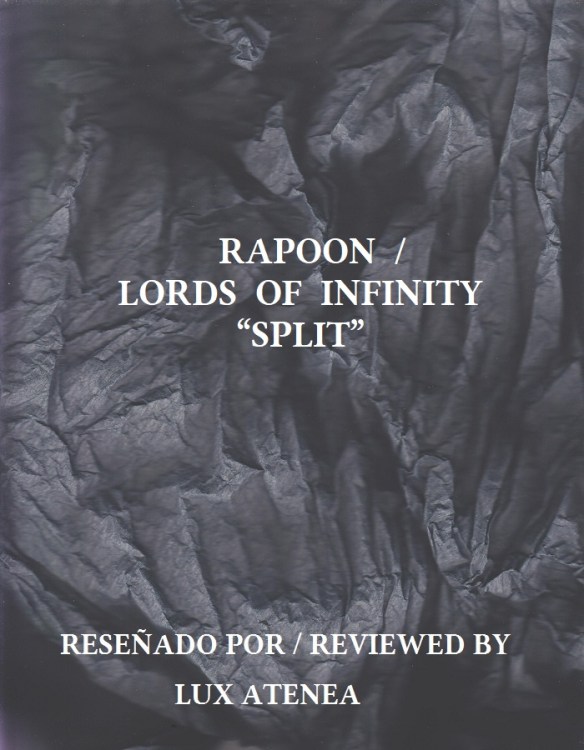 A finales del pasado mes de marzo fue presentado oficialmente este split protagonizado por Rapoon y Lords Of Infinity, y cuyo eje inspirador está basado en la metafísica de nuestro mundo. Una realidad existencial del sentido del ser en este universo siempre misterioso respecto a su sentido de existencia, y respecto a su propósito e intencionalidad divina. Publicado por el prestigioso sello discográfico polaco Zoharum New Experimental Art en formato digital y en esta preciosa edición limitada de 350 unidades en digipak CD de seis paneles, este magno split ha sido engalanado con un atrayente diseño de portada creado por Robin Storey (Rapoon) haciendo uso de su simbólico arte pictórico, quedando reflejado visualmente el concepto espiritual del Divino Creador de Todo que inspira este álbum. Nuestro universo creado, estructurado, y definido desde lo más pequeño a lo más grande por el omnipresente Creador, por el gran Arquitecto, por el Demiurgo gnóstico. Estéticamente hablando, este digipak es una sublime y lujosa edición discográfica. En este esplendoroso split, el prolífico artista británico Robin Storey, alma máter de Rapoon (sobradamente conocido por los melómanos lectores de Lux Atenea después de todas las reseñas que he publicado hasta ahora en este blog cultural non-mainstream sobre sus obras musicales), nos presenta esta innovadora fusión de música ambient y experimental para seducirnos con esta evanescencia sonora de corte místico. Ecos espirituales propios del Chamanismo y situados mucho más allá de la Razón y del Intelecto ya que, por este motivo, han sido precisamente la intuición y la inspiración los que han dado forma y estructura sonora a cada uno de estos temas musicales de Rapoon. El dúo musical Lords Of Infinity, formado por los talentosos artistas rusos Marina Kryzhanovskaya y Mikhail Kiryukhin, presentan en sus temas una armónica integración de la música ritual y de la esencia experimental para poder reflejar este mensaje místico que se mueve dentro de la dualidad luz-oscuridad, eternidad-perennidad, amalgamados en un conjunto absoluto que permite definir este mundo con precisión en sus diferentes grados de proporcionalidad. Si a esta grandeza artística le unimos la extraordinaria labor técnica de masterización realizada por Robin Storey (Rapoon), la dimensión sonora que presenta este álbum estoy seguro que va a seducir a los melómanos lectores de Lux Atenea a través de los siete temas que lo vertebran, cinco compuestos por Rapoon y dos por Lords Of Infinity. Una impactante experiencia sonora de trasfondo místico y esotérico.