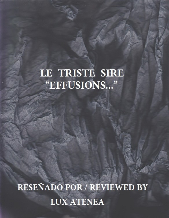 Neoclasicismo, fuerza sonora orquestal, composiciones que huyen de la sobrecarga instrumental en pro de la pureza del mensaje a través de la dulzura y de la limpia armonía de las notas musicales, trasfondos trágicos, composiciones para amantes del piano, ecos feéricos que huyen ante la oscuridad… El grandioso álbum “Effusions…” de Le Triste Sire se revelará a los melómanos lectores de Lux Atenea como una auténtica delicia artística para los amantes de esos momentos especiales marcados por la intimidad, por ese espacio temporal de ruptura a través de la meditación y de la serenidad, o como comprensivo cómplice musical para quienes se bañan en las profundas y negras aguas de la melancolía. ¡¡¡“Effusions…”, exquisita delicatessen artística!!! Sin más demora, iniciamos la audición de este extraordinario álbum con el primer tema “Deliverance”, empezando a andar por ese camino de la esperanza cuyo encuentro suele ser esquivo e impenetrable. Posteriormente, en el tema “Ubris”, será la voz del viento lo que traiga sequedad, polvo, y cenizas hasta la llegada de estos planos instrumentales para piano que llevarán todo el peso de la estructura musical del tema “Innocence Perdue”, con esta cadenciosa esencia melódica tan cautivadora y con estas notas fugaces que te encogen el alma. Escuchando atentamente la composición “Innocence Perdue”, uno observa cómo cobra vida ese ser que tuvo que recoger las ruinas de la belleza corrupta entre brumas de decadencia.