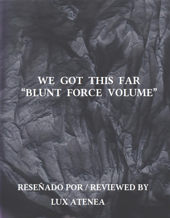 Me he quedado impresionado con We Got This Far y su obscura música rock&electrónica de corte industrial. Composiciones potentes, secuencias cortantes, y letras ásperas dan vida a este grandioso álbum titulado “Blunt Force Volume”, ofreciendo nueva energía y vitalidad a este estilo musical tan querido y tan sentido. Los melómanos lectores de Lux Atenea afines a la vanguardia musical podrán comprobar cómo “Blunt Force Volume” suena contundente, y se nota que los artistas de este dúo musical, Jason Ames-Silva y Oliver Marsh, lo tienen muy claro en cuanto a qué estilo quieren perfilar en sus temas musicales. Eclécticos, innovadores, arriesgan con rotundo éxito en la composición de cada uno de estos temas, haciendo que la audición completa de este álbum se convierta en todo un placer para el melómano. Los amantes de la música industrial ya tienen una nueva referencia artística y se llama We Got This Far. Sin esperar ni un segundo más, iniciamos la audición de este extraordinario álbum con el tema “Breath before the plunge”, intro donde lo mecánico y las impositivas atmósferas productivas se convierten en la mejor forma de presentar el excelso tema “Like dying”. Una muestra artística espectacular sobre cómo se puede hacer la mejor música industrial en esta época. “Like dying” es brutal, impactante y adictiva. Un tema destinado a ser incluido en toda sesión industrial que se precie por su calidad sonora. Luego, en el tema “Sedona”, bajará un nivel esta intensidad en pro de este preciosismo instrumental en la composición, ofreciéndonos una secuencia de sensaciones a ráfagas que te engancha. “Mistep” es tremendamente seco, duro, áspero, como debe resultar un tema forjado dentro de este estilo musical, mientras “Endgame” se presentará más melodioso, más cuidado en su estructura musical, pero con contrastes sonoros muy marcados entre pinceladas de vanguardia electrónica. “Endgame” es un tema excelso, y ha sido lo que más me ha sorprendido por esta acertada mezcla de lo industrial con la electrónica más dimensional. Parando un poco la acelerada dinámica en la cual estábamos subidos, el tema “Cave in” nos deleitará con esta pausada atmósfera futurista electrónica hasta que cortes sonoros del rock industrial rompan esta evanescencia espacial. Posteriormente, en el tema “Bludgeon”, entraremos en una composición más secuenciada, más perfilada, pero más densamente presente en el entorno, hasta que el tema “Anywhere but here” nos traiga el caos y la sorpresa musical constante, pasando de pasajes musicales cercanos al rock gótico a otros mucho más glam. Cierto relax aparecerá mientras empieza a sonar el tema “So this is doom”, pero el crescendo sonoro se adueñará de todo hasta que “Someone somewhere” ponga el punto y final a este maravilloso álbum con este remix de la canción “Cave in”. “Blunt Force Volume”, fusión conceptual para llevarnos a otra definición sonora de la música industrial. ¡¡¡Disfrútenlo!!!