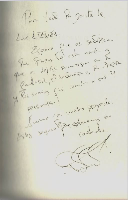 Quiero dar las gracias al genial escritor ALBERTO TRINIDAD por su cortesía al enviarme este promocional firmado y dedicado.