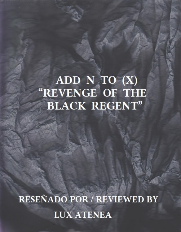 Hace unos días, he vuelto a disfrutar de la mejor música electrónica analógica escuchando este maravilloso CD single de nuevo. Con su audición, inevitablemente he vuelto a recordar el impresionante e inolvidable concierto que ofreció este grupo musical de culto en la sala madrileña Moby Dick en el año 2001. ADD N TO (X) es una grandiosa banda británica nacida en el año 1994 y que, desde sus inicios artísticos, siempre se entregó en cuerpo y alma a la vanguardia musical a través de composiciones trasgresoras de inconfundible dimensión espacial y complejidad sonora. En ADD N TO (X) se puede disfrutar ese arte musical electrónico innovador que se paladea en cada pasaje sonoro, en cada siniestro y espectral plano instrumental, en cada trasfondo dimensional espectacularmente perfilado, y en cada lírica armoniosamente integrada con absoluta maestría en cada composición. Dentro de su espectacular obra musical, el CD Single “Revenge Of The Black Regent” publicado por el mítico sello discográfico Mute Records que tanto admiro y venero, se ha terminado convirtiendo en una joya discográfica cuya audición es imprescindible para el melómano lector de Lux Atenea entregado al disfrute de los temas musicales más selectos dentro del universo sonoro electrónico más exquisito. Sin más demora, iniciamos la entrada en esta delicatessen musical con una de las más excelsas composiciones que se hayan creado dentro de la escena electrónica en las últimas décadas: “Revenge Of The Black Regent”. Un espectacular y oscuro tema cuya evolución sonora se extiende inexorablemente por nuestra mente como si fuera la onda expansiva de una supernova, destinada a consolidar un nuevo orden siniestro marcado por lo despiadado y lo inmisericorde. Siempre que escucho esta canción, me viene a la mente la impresionante acogida que tuvo este tema entre el público asistente a la sala madrileña Dark Hole, cuando sonó en la pista como parte de mi sesión gótica ofrecida en la fiesta de presentación de una nueva edición de la Revista Cultural Gótica ATIS&NYD. Terminada la sesión, las consultas sobre cuál era el título de este tema, junto a la obtención de información sobre otros temas y grupos musicales que había incluido en esa misma sesión, fueron sucediéndose a lo largo de la noche. Hasta el final del tema “Revenge Of The Black Regent” es monumental y grandioso. ¡¡¡Inolvidable!!!