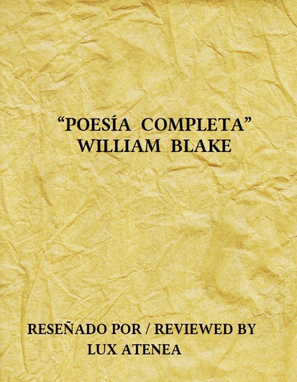 En su poesía, William Blake también se muestra desafiante. Su luz, descrita en palabras, es enérgica y vital porque su pensamiento es la alegoría, su palabra es el símbolo, y su experiencia es la metáfora. Blake nos habla porque tiene la autoridad espiritual de quien conoce porque ha cometido errores, y ha aprendido la lección gracias a ellos. Un factor muy importante a la hora de comprender el trasfondo de su obra: el error es uno de nuestros mejores maestros, si sabemos entenderlo. Y este gran místico no nos habla solamente con palabras, sino con los hechos que protagonizó en vida. En algunos aspectos nos puede parecer que William Blake destila cierta amargura. Tal vez pueda ser la amargura que emana del incansable aventurero en busca de su unidad con Dios. ¿Quién no tiene momentos de flaqueza en este mundo, por firmes que sean los principios y las creencias que se tengan dentro de uno mismo? No podemos exigir al poeta con el don de la visión reveladora que no sea humano, y que no tenga momentos en los que se encuentre débil y desamparado. El espíritu gótico del ser solitario mantiene su mirada dirigida al Cielo con fuerza y decisión a pesar de las dificultades, y los encantos de Maya son inevitables. Con su simple contacto te atrapan, te distraen, te hacen ver y sentir cosas inimaginables. Su poder es colosal, imposible de concebir, pero el poder de la poesía es mucho mayor. El poder de su rebeldía es afilado como una hoja de afeitar, y con ella podemos cortar la red en la cual se puede quedar atrapado por lo material hasta quedar inmovilizados en vida. Esa es la magia de William Blake, la magia del poeta de la auténtica libertad, la libertad espiritual. “Poesía completa”, magna obra literaria por excelencia. ¡¡¡Disfrútenlo!!!