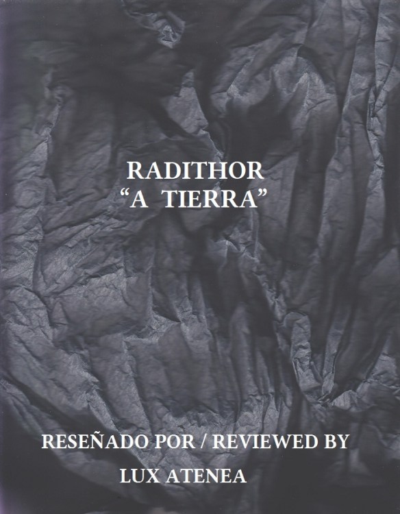 Iniciamos la audición de esta grandiosa obra musical adentrándonos en el primer tema “Ya Se Atisba El Fin-Icio”, siendo sus texturas sonoras situadas en la frontera del noise lo que den esta definición trágica que, tras la aparición de planos musicales industriales y post-industriales, nos llevarán a una marcha fúnebre post-apocalíptica donde la melódica trompeta suena a alarma de ataque aéreo desde las alturas. Agobiante y desangelado, el tema “Ya Se Atisba El Fin-Icio” dejará fascinados a los melómanos lectores de Lux Atenea, pero esto es solamente el principio de este apasionante viaje al nuevo universo sonoro de Radithor. Cuando el tema “Estaba Solo Dentro” abra su carga musical sin limitación alguna, la electrónica experimental de vanguardia empezará a expandir sus cromatismos sonoros para ir perfilando este entorno de forma siniestra. Con un crescendo vocal que irá aproximándose a nosotros, se erigirá como maestro de ceremonias de esta nueva estructura industrial donde las secuencias instrumentales en metal adquieren un dinamismo que te hipnotiza durante su atenta escucha, retornando lo vocal para cerrar este círculo sonoro de forma magistral. ¡¡¡“Estaba Solo Dentro”, impresionante!!! Con total contundencia, el tema “Raíces Para” aparecerá para sorprendernos con esta admirable fusión musical de lo minimal y lo post-industrial, combinando la densa vibración de la percusión con estas iridiscencias cristalinas que terminan marcando el tempo de toda esta estructura artística. Hundiéndose poco a poco cada uno de estos planos musicales, la estructura de “Raíces Para” irá paralizando su actividad ante lo sólido, ante lo pesado, ante el espesor de lo material.