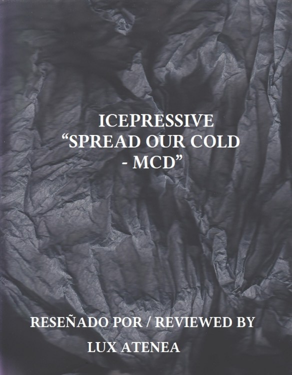 Formado por Iniako (batería), Unorthodox (guitarra), y Kadgar (vocalista y bajo), la banda Icepressive presentó en el año 2009 esta potente obra musical titulada “Spread our Cold”. Autoeditada en este MCD, en su interior, los melómanos lectores de Lux Atenea encontrarán cuatro temas englobados conceptualmente dentro del estilo black-metal. Compuesto por Icepressive de forma tan contundente y siniestro para impactar sin ningún tipo de compasión al melómano afín a esta apasionante escena metal, proyectan una gran creatividad y versatilidad sonora a la hora de concebir estos temas tan sublimes. Como analista cultural, Icepressive me ha sorprendido por la admirable estructura instrumental que presentan sus obras, y que han sabido potenciar musicalmente con el brutal y demoledor registro de voz de Kadgar, cuya audición les sobrecogerá. Esta magnífica edición discográfica de “Spread our Cold” ha sido producida y publicada por la propia banda Icepressive en una admirable iniciativa que, espero, les abra las puertas de un importante sello discográfico que pueda dar continuidad y seguridad a su prometedor futuro musical dentro de la escena metal. Sin más demora, iniciamos la audición de esta grandiosa obra con la bestial interpretación del tema “Smart Raging Flames”, y cuyo siniestro registro de voz parece no tener fin en su esplendorosa y potente definición. Impresionados por la calidad artística de Icepressive, a continuación, el contundente tema “Written with Ice of Valhalla” hará acto de presencia, proyectando el heroísmo y el valor más allá de los límites humanos que exigen el tributo emocional y sentimental del individuo para ser solemnemente sacrificado en el altar de los Dioses. Sin duda alguna, los melómanos que sienten con pasión la audición de las delicatessen musicales más selectas aparecidas dentro de la escena metal, han de añadir el excelso tema “Written with Ice of Valhalla” a esa lista tan exclusiva. Posteriormente y sin clemencia alguna se presentará “It´s Marks us all (chaos)”, un tema brutal donde la piedad solamente encuentra una espada que la degüelle. Llegando a la clausura de este deslumbrante maxi, el tema instrumental “Outro” de agresivos samples bélicos de inspiración marcial, pondrá el punto y final a este magno trabajo musical que debería llevar a Icepressive a grabar su primer álbum, en vista al fértil talento en la composición que han demostrado en su ópera prima. “Spread our Cold”, excelsa música black-metal destinada a engrandecer artísticamente la escena nacional. ¡¡¡Disfrútenlo!!!