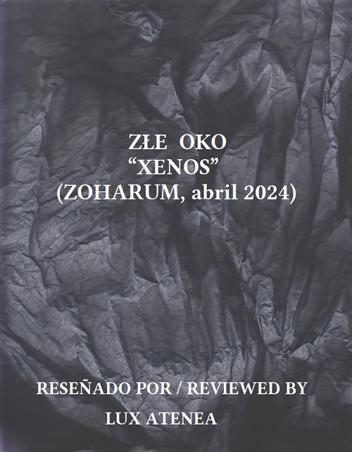 En otra línea artística completamente distinta aparecerá el tema “Przepraszam”, cambiando su base conceptual al resaltar lo experimental dentro de su eclecticismo, proyectando mucha más luz dentro de este entorno sonoro de corte futurista donde la lírica es interpretada de forma mecánica e impersonal. Con destellos nihilistas, en “Przepraszam” se encuentran trazos individualistas donde el universo es uno mismo, donde el mundo es uno mismo, y donde las emociones han de controlarse para que no estallen. Posteriormente, el tema “Złe Oko” adquiere el impulso industrial arrollador que lo metálico y lo mecánico integran en su dominante presencia expansiva. Sin duda alguna, “Złe Oko” es el tema más extremo y brutal de este álbum, proyectando esa intensidad sonora que deja el drama, el dolor, y la desolación a su paso. Una recreación del Mal en su sentido más amplio, y con las energías dirigidas a provocar ese daño imposible de reparar o de evitar. En el fondo, “Złe Oko” va mucho más allá del presente al estar anclado a lo ancestral, y esto ha quedado fielmente recreado en este tema, emanando ese trasfondo que va mucho más allá de lo racional y lógico que aparentemente dominan en nuestro presente. Finalmente, el tema “Las Outro” pondrá el punto y final en este álbum con esta estructura musical absolutamente experimental, y con trazos sonoros que lo enlazan con el primer tema. Una fugaz pincelada musical. “Xenos”, Złe Oko transformando el eclecticismo conceptual en puro arte de vanguardia, y este álbum es su más contundente demostración de creatividad innovadora. ¡¡¡Disfrútenlo!!!