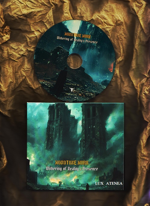A mediados del pasado mes de noviembre fue presentado oficialmente el nuevo álbum de Monotone Murk titulado “Withering of Reality’s Presence”, a través del sello Ominous Sounds dirigido por el genial artista español Juan Carlos Toledo (Hiemis, Silent Love of Death), compañía discográfica especializada en artistas y bandas musicales dentro de la escena dark ambient y ritual ambient. Publicado en formato digital y en esta lujosa edición limitada de 50 unidades en digipak CD de seis paneles, el álbum “Withering of Reality’s Presence” ha sido engalanado con este impactante diseño creado por Juan Carlos Toledo donde las imágenes post-apocalípticas han quedado perfectamente integradas a nivel visual con la decadencia religiosa y el hundimiento de la sociedad moderna, proyectando una catastrófica atmósfera de destrucción y un colosal escenario de ruinas tras el fin de la civilización. Vertebrado por siete magníficos temas compuestos por Nagel, alma mater de Monotone Murk, esta nueva obra musical impresionará a los melómanos lectores de Lux Atenea por su avanzada perspectiva artística de vanguardia dentro de la escena dark ambient, incorporando planos sonoros industriales y cromatismos sonoros propios del ambient y de lo experimental hasta llevarnos a otra dimensión conceptual del dark ambient. En este sentido, Monotone Murk ha logrado convertir su álbum “Withering of Reality’s Presence” en una clara muestra de su talento en la composición de temas musicales con trasfondo, con fundamento, recreando escenarios decadentes con una belleza siniestra tan cruda como elegante en su visión musical, transformando la audición de este álbum en un auténtico placer para los melómanos amantes de lo obscuro y de lo desolador.