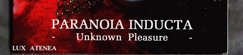 En “Apokatastasis”, incluido en la compilación musical “Wounds Of The Earth Compilation 6” publicado por el sello Wounds of the Earth en el año 2014, Paranoia Inducta sabe cómo fusionar en este crisol sonoro lo industrial, el dark ambient, lo ritual, el ambient, y lo experimental, y este tema muy adelantado a su tiempo a nivel conceptual impresionará profundamente al melómano lector de Lux Atenea por su perspectiva tan vanguardista como ecléctica. Superlativo en su definición estructural, el encanto y la atracción del tema “Apokatastasis” les conducirá a una atmósfera sonora cuya dimensión y riqueza musical es muy difícil de encontrar en un álbum, incluso de vanguardia. ¡¡¡“Apokatastasis”, crème de la crème musical de Paranoia Inducta!!! Posteriormente, el tema “Mare Tenebrarum”, incluido en el álbum recopilatorio “Eudoxus” publicado por el sello Kalpamantra en el año 2016, hará foco conceptual en lo industrial pero potenciado con estos planos sonoros de corte experimental y este trasfondo dark ambient que da trasfondo a su siniestro horizonte. En su conjunto global, “Eudoxus” evoluciona como si fuera un tema dentro del estilo dark ambient, realzando este chirriante plano sonoro cíclico de inspiración industrial que termina convirtiéndose en el tempo de la composición y remarca su eclecticismo conceptual dentro de esta perspectiva musical de vanguardia. Incluso, al final del tema encontrarán unas fugaces pinceladas sonoras más propias del noise. Desembocando en la composición homónima del álbum incluida como tema inédito, la amplitud dimensional aumentará al igual que la disposición de los focos sonoros, envolviéndonos con esta atmósfera sacra como si fuera una composición de ritual ambient. Pero “Unknown Pleasure” es muy experimental, y el salto a otros estilos musicales no tardará en aparecer para orientar este tema hacia lo místico. Un alejamiento de lo material y físico que, como un ceremonial de la muerte, va haciéndonos sentir en ese estado hierático que rompe con lo existencialmente denso para llevarnos a otro estado de consciencia. “Unknown Pleasure”, exquisita selección musical como alma artística de esta lujosa edición discográfica, y como muestra clara y contundente de la proyección sonora innovadora desarrollada por Paranoia Inducta a lo largo de dos décadas. ¡¡¡Disfrútenlo!!!